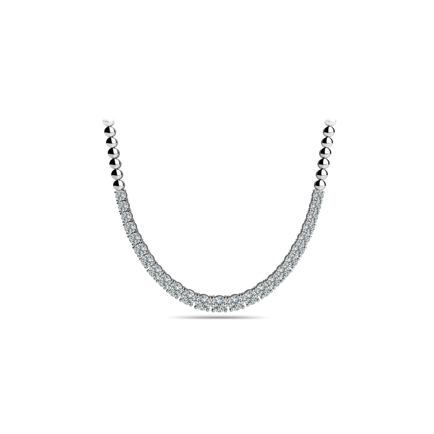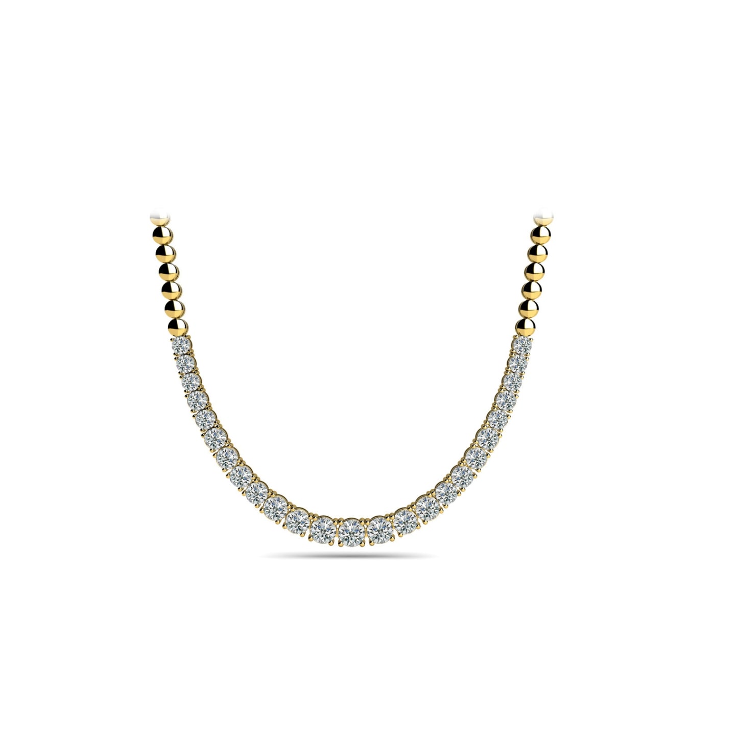 The Miking Soli Diamond Necklace is a stunning piece of jewelry that boasts an 18k gold finish and a classic graduated basket setting. It's adorned with 19.74 carats of all-natural diamond stones, making it an exquisite accessory.