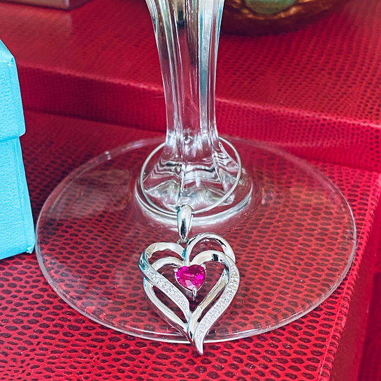 The Diamond Charm is a perfect accessory to adorn your wine bottle or glass. It is made of premium quality sterling silver 925 and has a gorgeous gemstone prong set. The charm is designed with a natural diamond that weighs 0.01 carats and a stunning lab-created ruby that weighs 0.63 carats, creating a timeless and sophisticated look that radiates elegance.